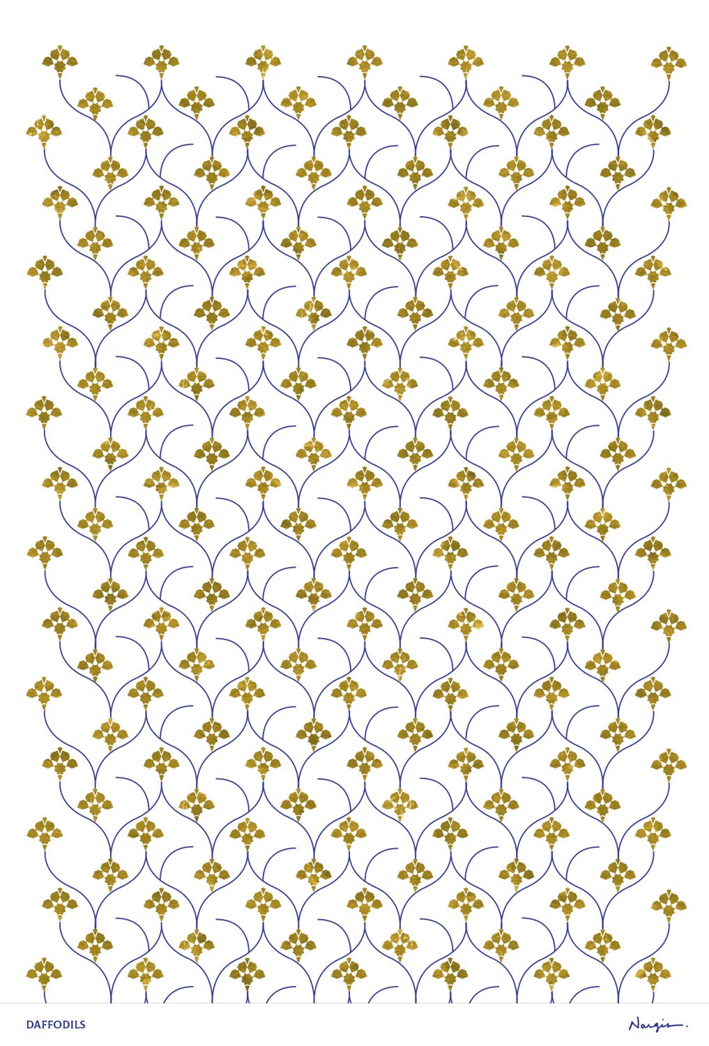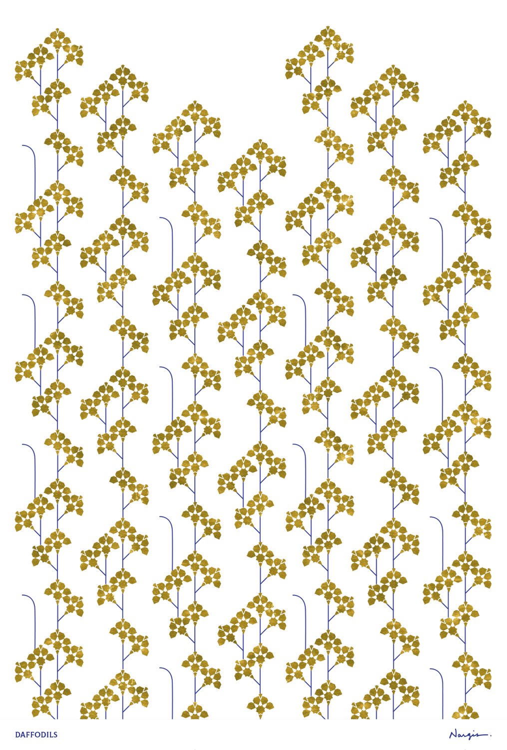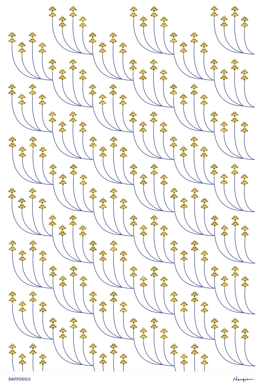 A flower meadow full of daffodils moves back and forth in the wind. Watching this game of nature fascinates me. The patterns shown are an attempt to capture the flowers and movements.