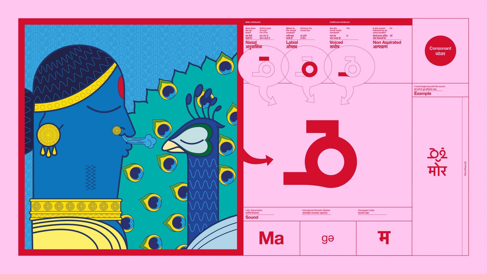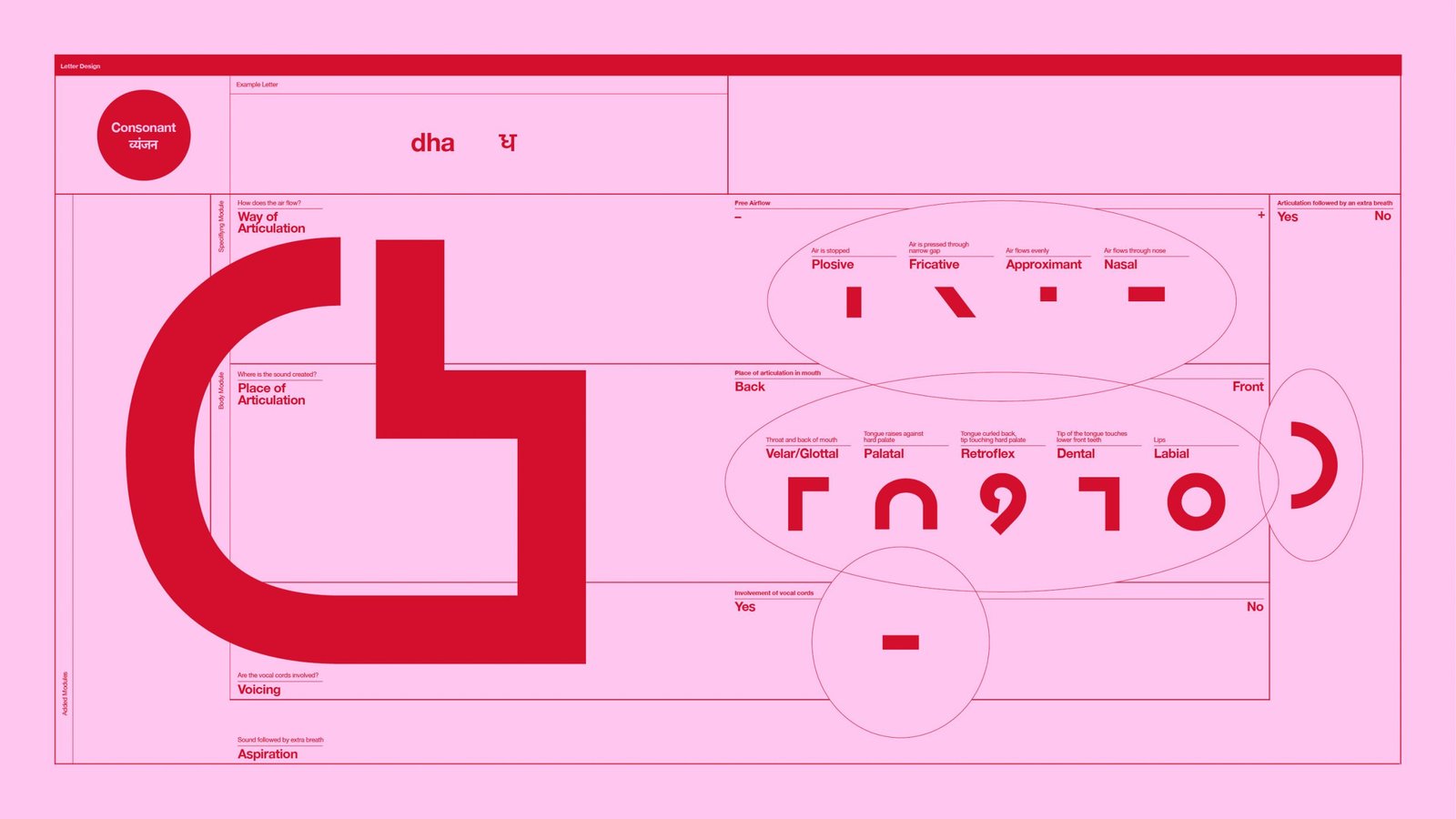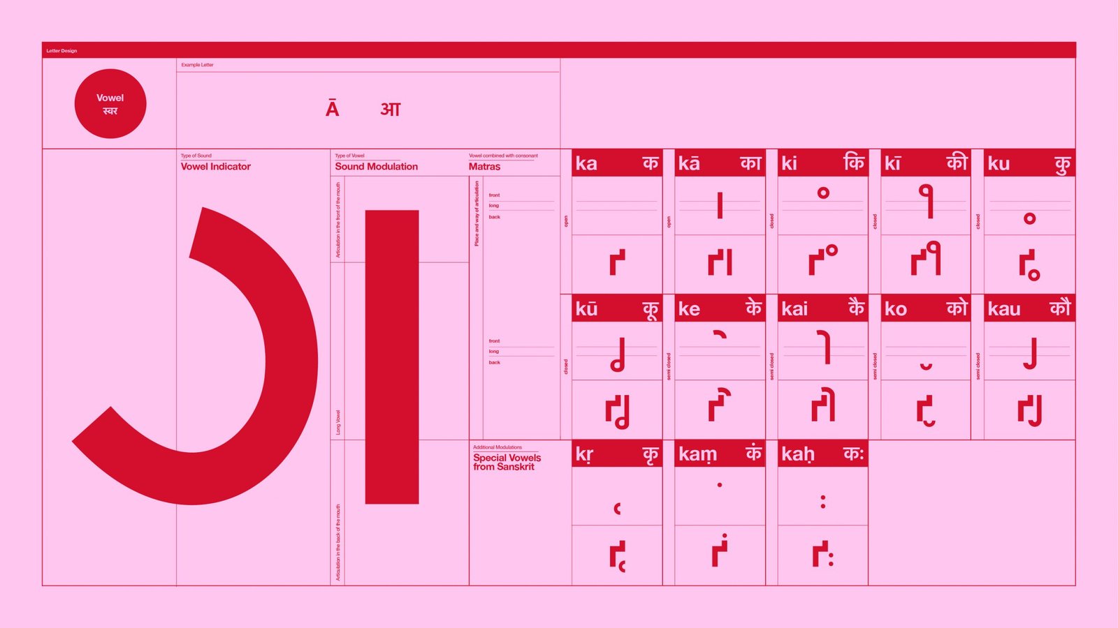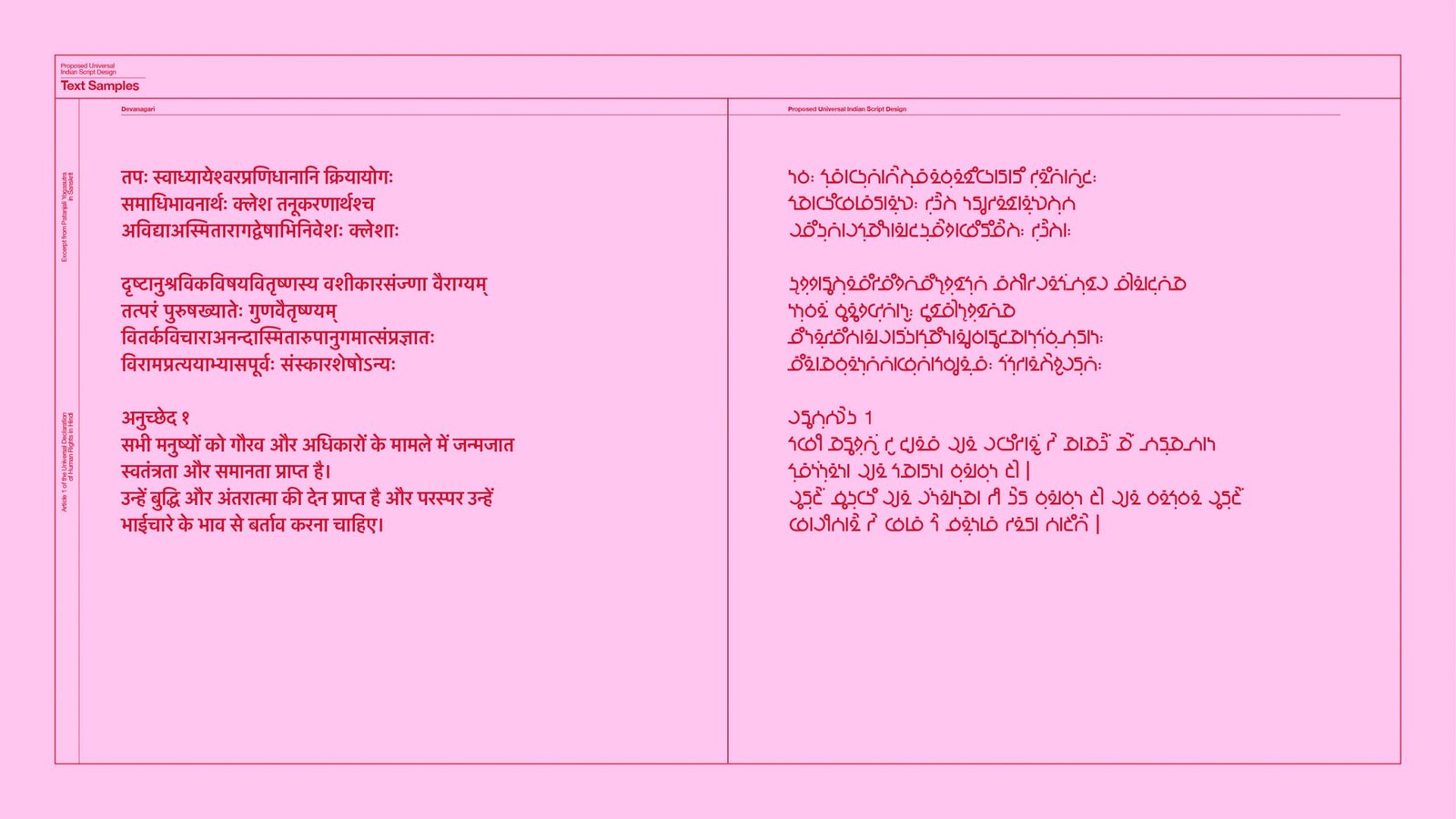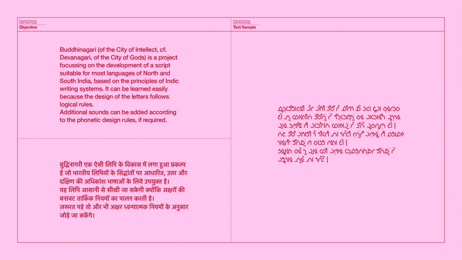 It’s furthermore an experiment how a script can be constructed on a purely logical basis with letters formed on modular principles, at the same time featuring certain characteristics like readability, optical harmony, contrast, and a distinct Indian look.